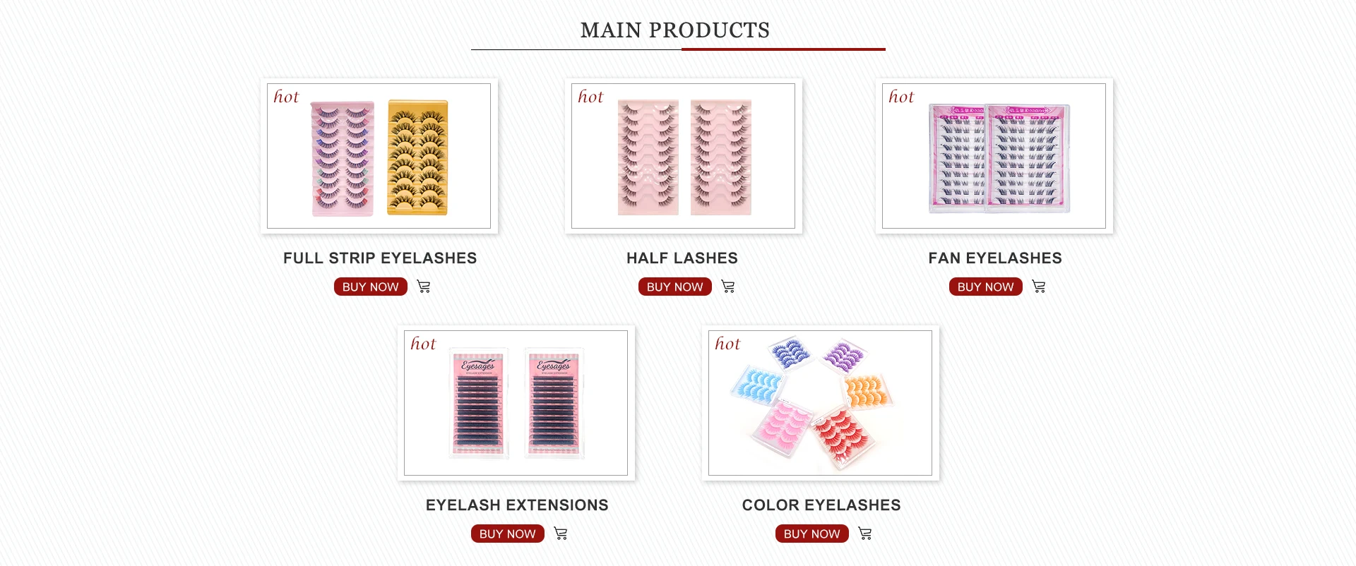 Productos principales:Pestañas, Extensiones de Pestañas, Pestañas de Abanico, Tira de Pestañas, Racimo de Pestañas